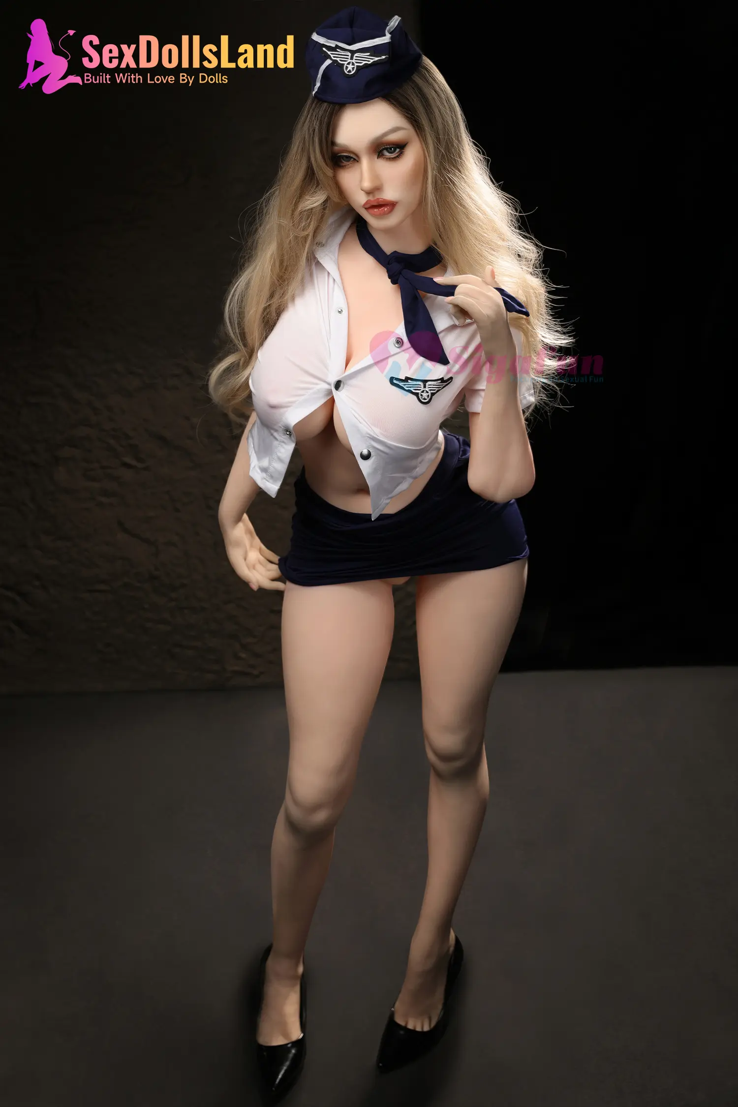- She’s a big boobs sex doll with seductive stewardess allure.